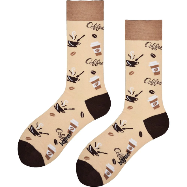 - Pánske Ponožky BENYSON organická bavlna, veselá téma káva, svetlo hnedá